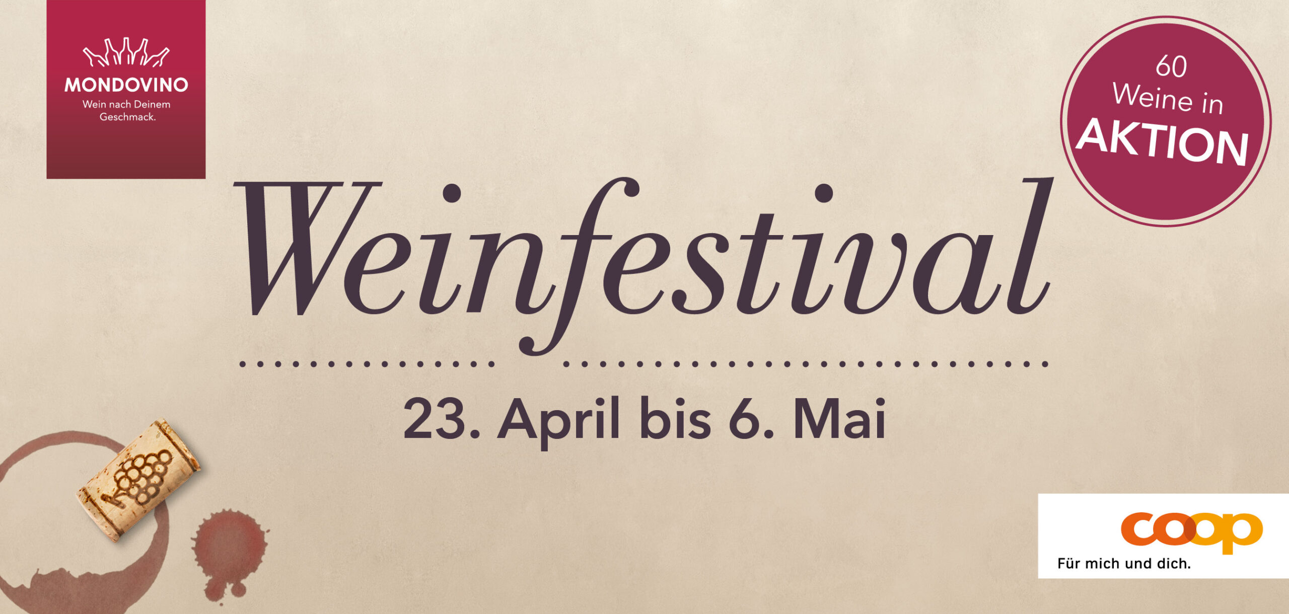 Vom Donnerstag, 23. April bis Mittwoch, 6. Mai 2026 profitieren Sie während des Weinfestivals auf 60 Weinen von Aktionspreisen.